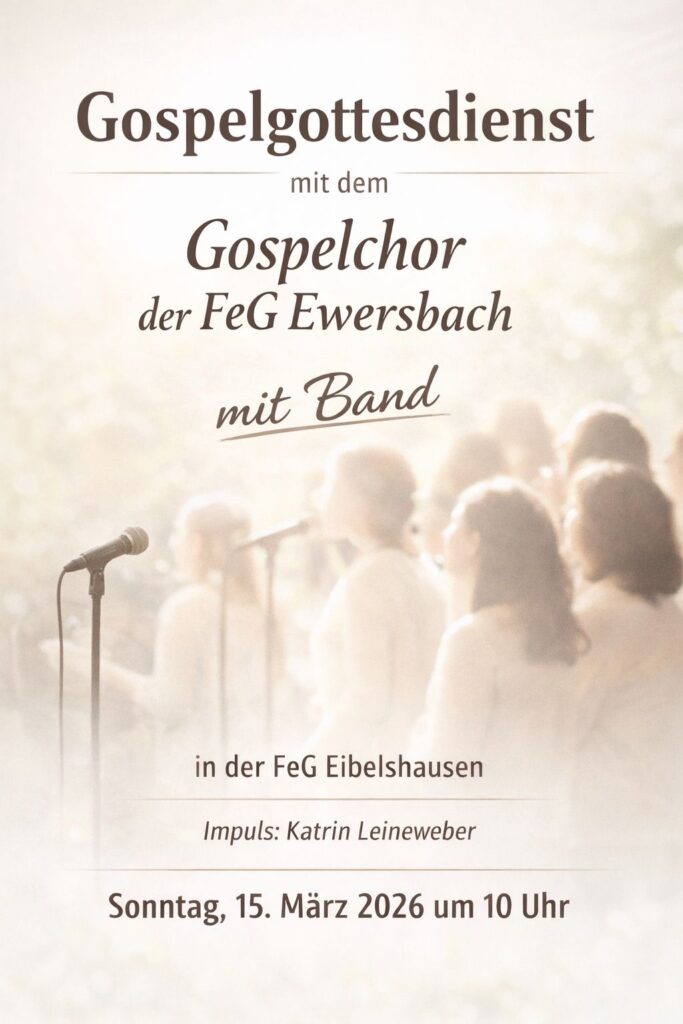 • 15. März 10.00 Uhr Gospelgottesdienst mit dem Gospelchor der FeG  Ewersbach (Impuls: Katrin Leineweber)