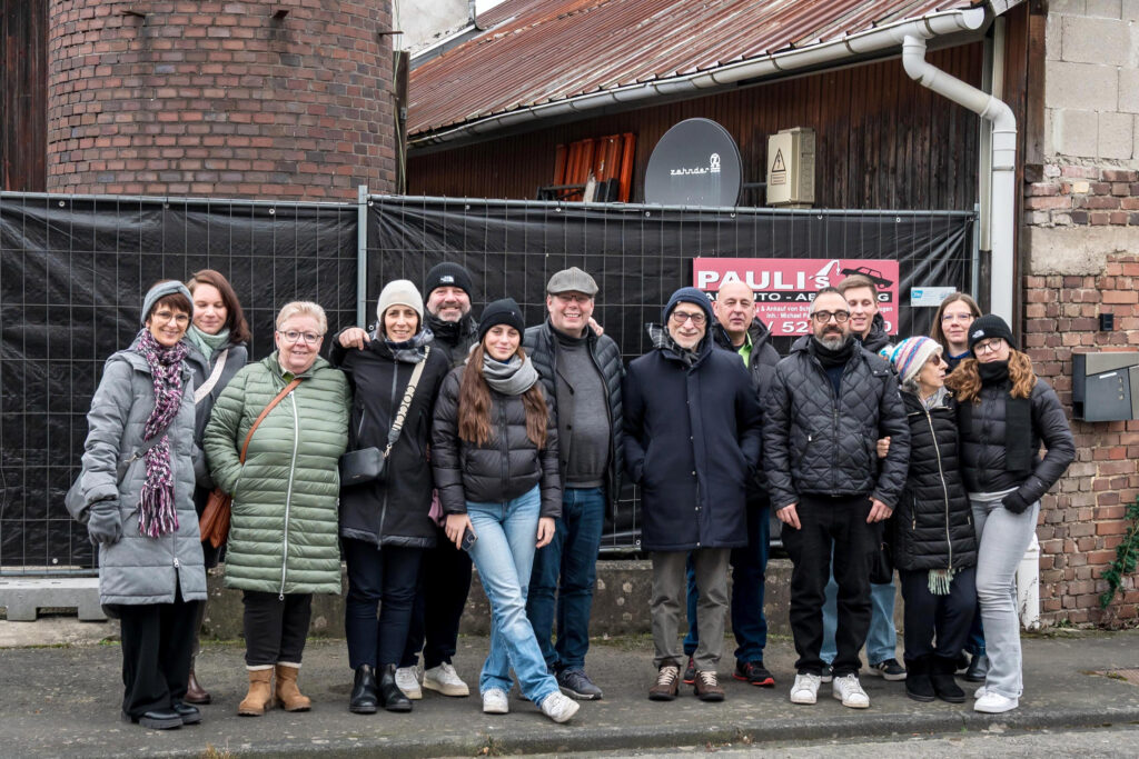 Nach Stadtallendorf und Trutzhain war Eschenburg für die Familie die wichtigste Station ihrer Zeitreise. Auch wenn es nicht viel zu zeigen und zu sehen gab außer alten Fassade-Resten am früheren Holighaus-Gelände – hier hatte er die zwei Jahre erlebt und überlebt. Der gemeinsame Besuch der wenigen heute noch sichtbaren Spuren und der Austausch im Rathaus machten aus einer historischen Recherche eine persönliche Begegnung.