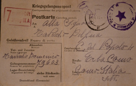 Dokumente aus der Zeit hat Domenico Tavecchio seinerzeit vernichtet. Zu schwer lastete das Erlebte auf ihm. Nur eine Postkarte vom 6. Juni 1944 ist erhalten, die er an seine junge Frau Delfina und ihre sechsjährige Tochter Tiziana schrieb. Die “Kriegsgefangenenpost” aus dem „Stammlager XI-A“ enthielt den Stempel „geprüft“. Hiermit ging die Familie auf Spurensuche.